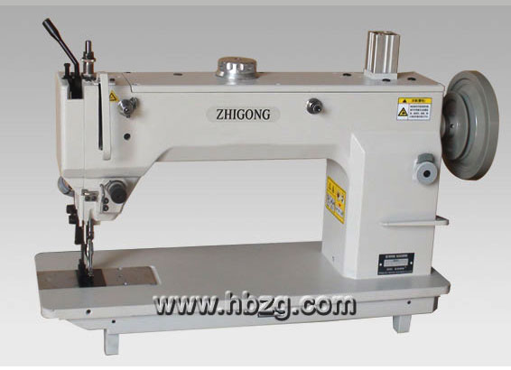 采用單針擺梭,構成雙線鎖式線跡,升降式送料牙,交替式壓腳,此機構在額定范圍內的任何長度針距下,縫制滑性,粘性及縫紉較長制品時,都能保證上、下層不移,使制品整齊,線跡美觀。連桿挑線機構,使主軸轉數得以提高,減輕聲音,保證整機質量,延長使用壽命。